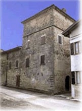 All'ingresso del borgo spicca la possente casa-torre cinquecentesca. Una singolare caratteristica dei paramenti murari delle antiche abitazioni è l'eccezionale numero di "sporti apotropaici", sorta di bugne sporgenti di arenaria scolpita in foggia di volti stilizzati.