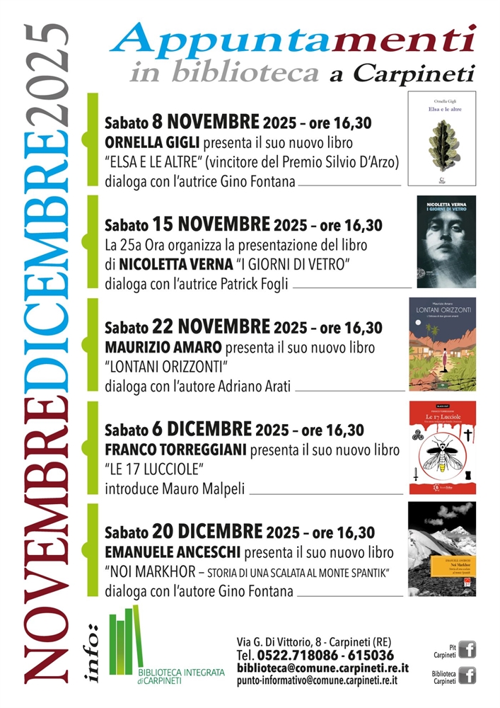 Appuntamenti in Biblioteca a Carpineti - Novembre e Dicembre 2025