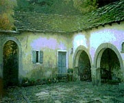 Il portale d'ingresso della corte mostra un arco a tutto sesto impostato su mensole concave aggettanti dagli stipiti.