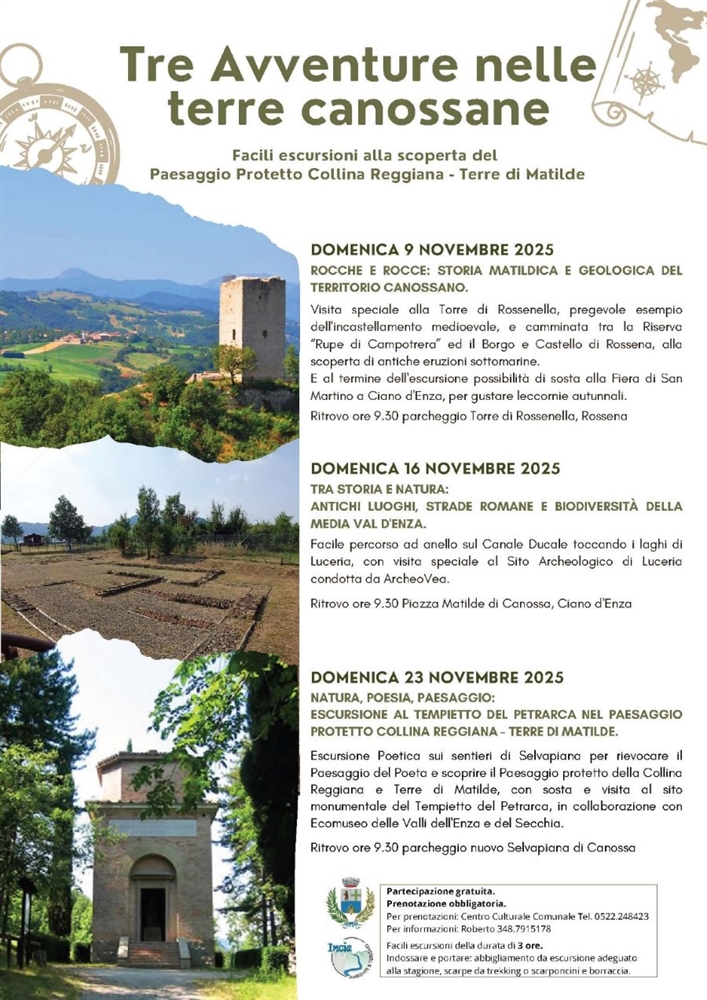 Facili escursioni della durata di 3 ore ciascuna, alla scoperta del Paesaggio Protetto della Collina Reggiana - Terre di Matilde