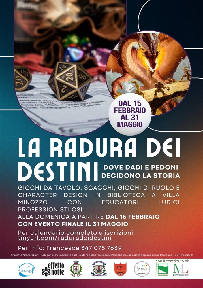 Dal 15 febbraio al 31 maggio la biblioteca di Villa Minozzo diventa il cuore pulsante dell’immaginazione con “Lo Radura dei Destini – Dove dadi e pedoni decidono la storia”, un nuovo spazio dedicato a giochi da tavolo, scacchi, giochi di ruolo e character design pensato per ragazze e ragazzi che vogliono mettersi in gioco, creare mondi e vivere avventure fuori dall’ordinario.